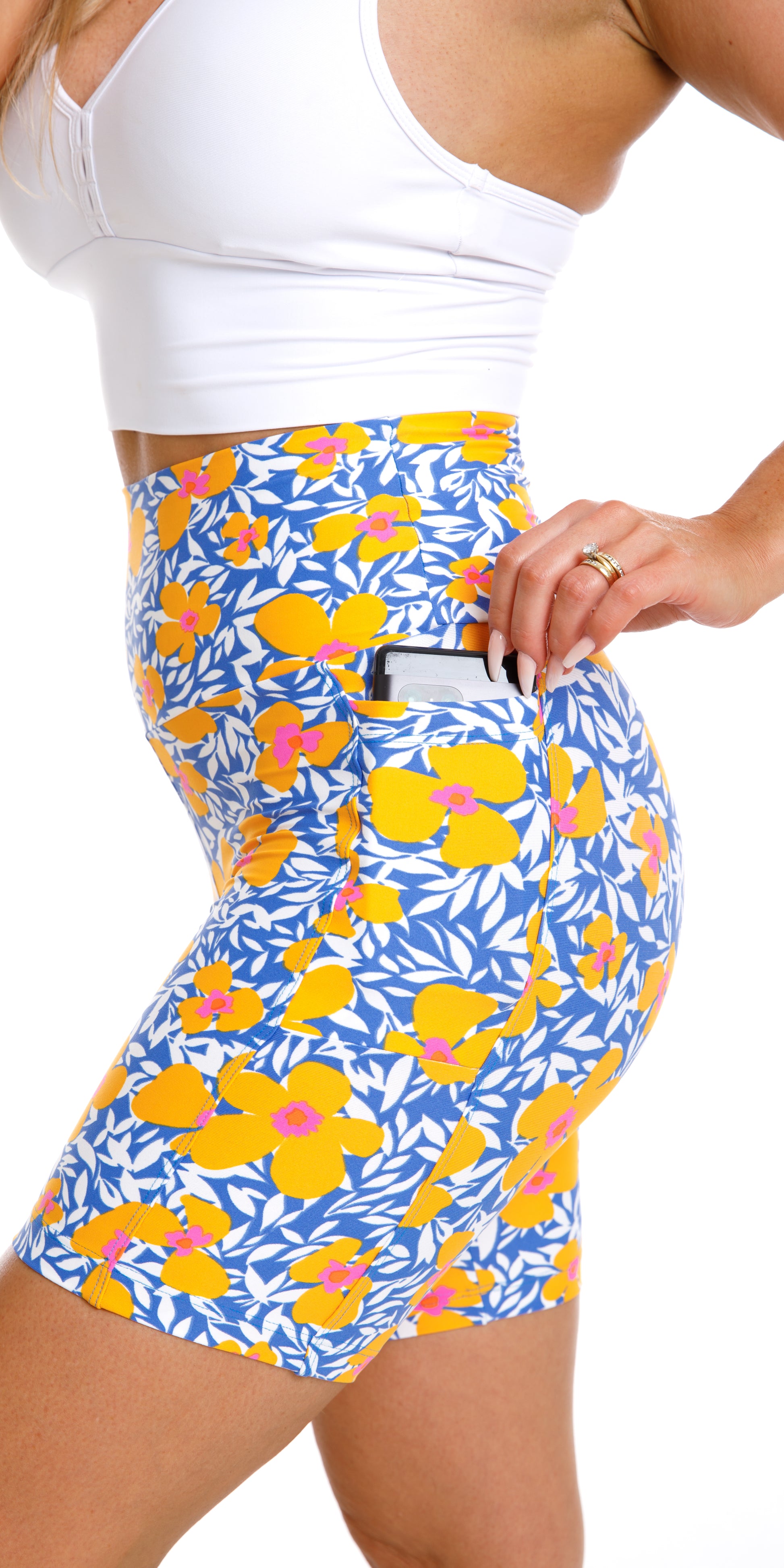 Experience hands-free exercise and errand running in our Eco Midi Shorts with Pockets.