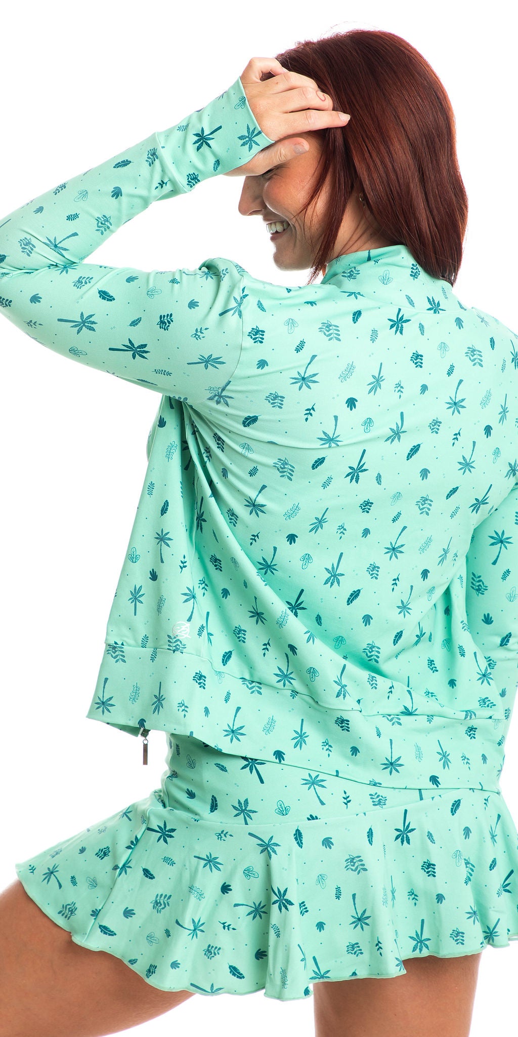 Embrace versatility with our chic long-sleeve zip-through jacket, designed for both cooler days and sunny adventures. Crafted with SPF50 protection, this jacket is your go-to for summer days at the beach and winter workouts alike.