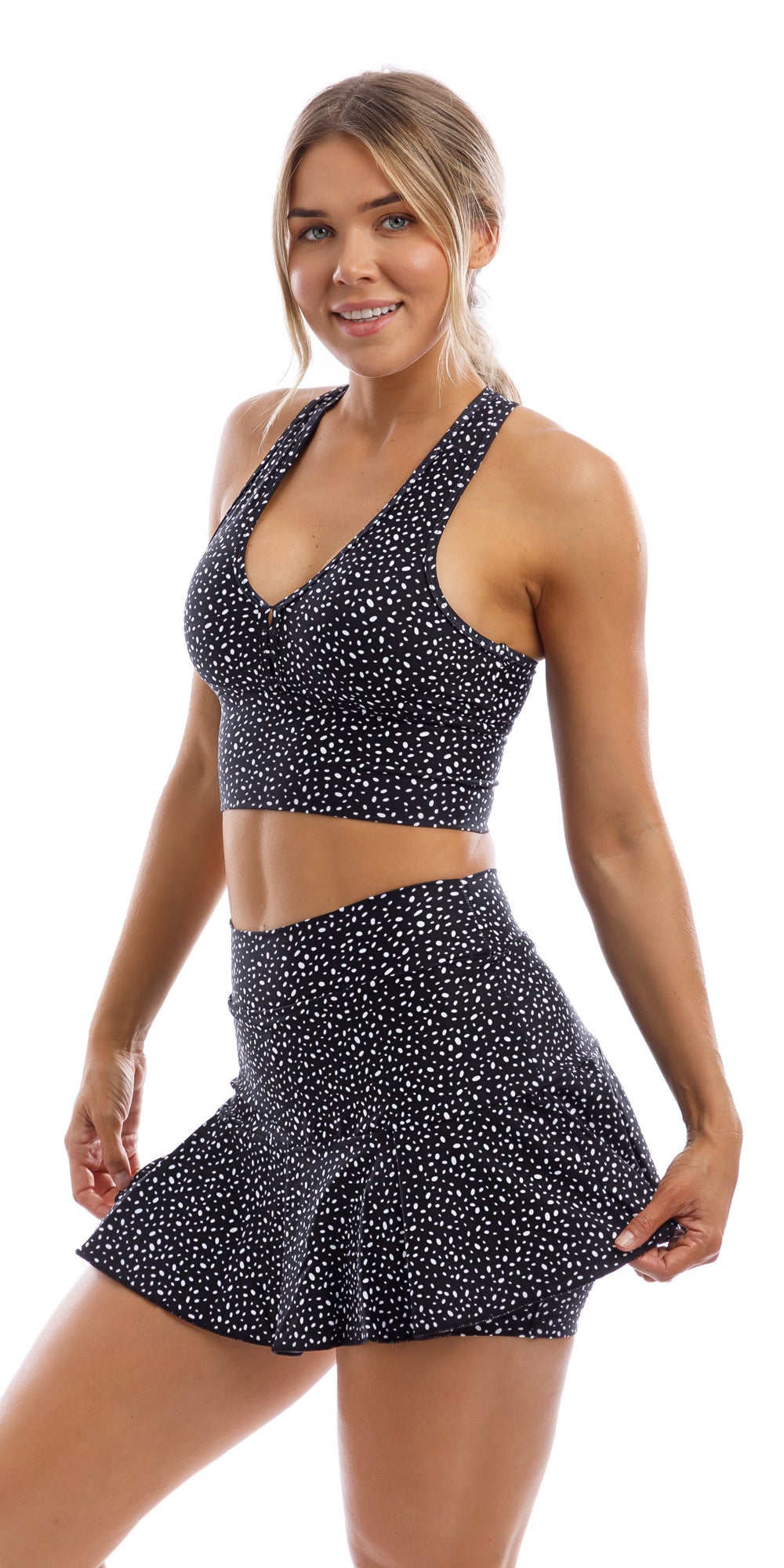 Brooklyn is a dress size 8 and wears a small in all of our pieces.