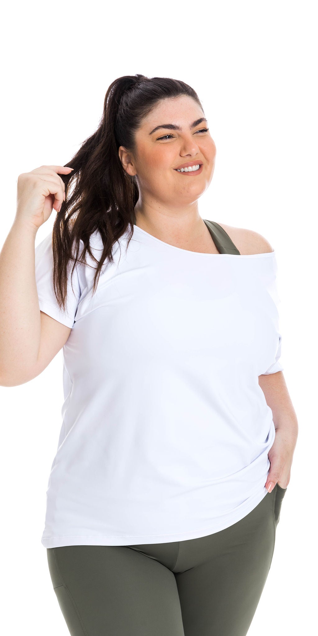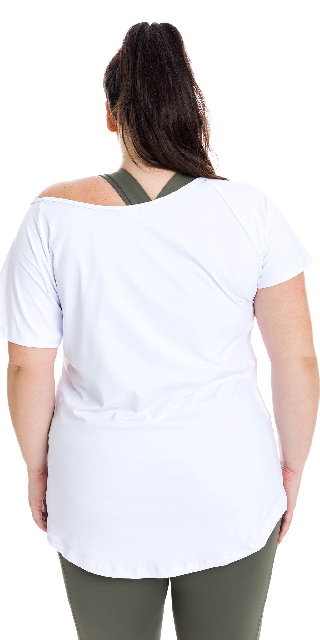 Our favourite Off The Shoulder Tee now comes with a Short Sleeve. Wear paired with leggings, or tucked in to your favourite jeans, this versatile top is ideal pre or post-workout and is designed for all day comfort.